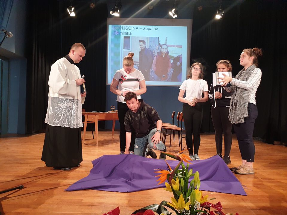 Tijekom jutra u križevački Hrvatski dom stiglo je više ekipa vjeroučenika koje su, pod pokroviteljstvom mjesečnika „Mali koncil – Mak“, tijekom jutra i prijepodneva sa svojim vjeroučiteljima stvarale dramske, glazbene i plesne izričaje na temu hrvatskih svetaca i blaženika.