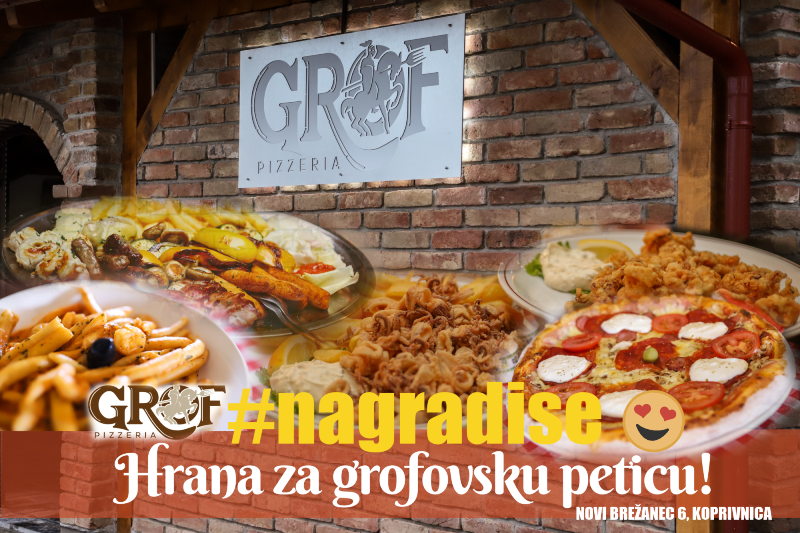 Poznati novootvoreni koprivnički restoran prepoznatljiv po finim pizzama legendarnog picajola Grge te svojim mesnim i ribljima platama. Uz meso i ribu ovaj restoran je poznat po svojim ćevapima, ali i krčkim šurlicama s kozicama. Za naš Tjedan restorana daruju dvije mesne plate GROF za dvije osobe.