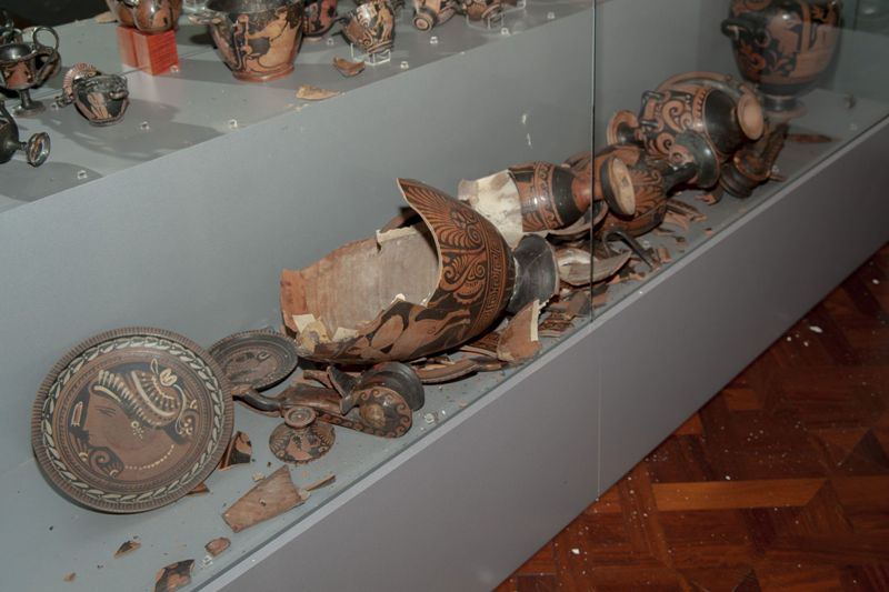 Tijekom niza potresa 22. ožujka 2020. godine, u Arheološkom muzeju u Zagrebu oštećeno je 25 posuda iz najbrojnije i najznačajnije zbirke grčkih vaza u Hrvatskoj, od kojih su neke razlomljene u mnogo dijelova te će zahtijevati vrlo kompleksne konzervatorsko-restauratorske radove. Najveće oštećenje pretrpio je volutni krater, koji se ističe svojom veličinom, visinom od 70 centimetara i vrlo lijepo izvedenim ukrasima u tehnici crvenofiguralnog stila.