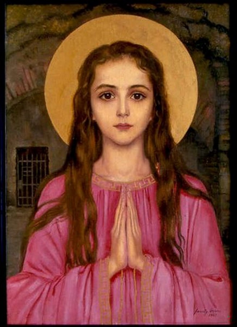 Povijest svete Filomene, grčke princeze iz Nikomedije počinje kada je rimski car Dioklecijan pozvao je njene roditelje u Rim, jer je želio pripojiti Rimskom imperiju njihov polis. Dioklecijan se zaljubio u Filomenu, zbog njene tjelesne ljepote i lijepog ponašanja i želio je oženiti je, nudeći njenim roditeljima veliko bogatstvo i slobodu njihove države, ako pristanu. Pristali su, ali Filomena je odbila, jer se prije toga zavjetovala na djevičanstvo Isusu Kristu.