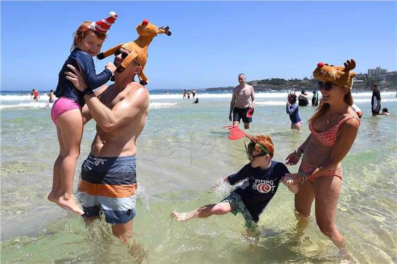 Božićni dan brojni Australci započeli su kupanjem na plaži Bondi u Sydneyu. Australija se danas znoji na temperaturama višim od 40 stupnjeva Celzijusovih.