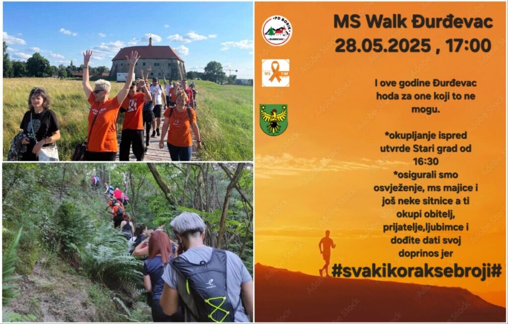 Planinarsko društvo Bork Đurđevac i ove godine organizira hvalevrijednu akciju MS Walk – Hodajmo za one koji ne mogu, u znak podrške osobama oboljelima od multiple skleroze. Ovaj humanitarni hod tradicionalno okuplja brojne građane, a održat će se u srijedu, 28. svibnja 2025. godine, s početkom u 17,00 sati, dok je okupljanje predviđeno ispred utvrde Stari grad od 16,30 sati.