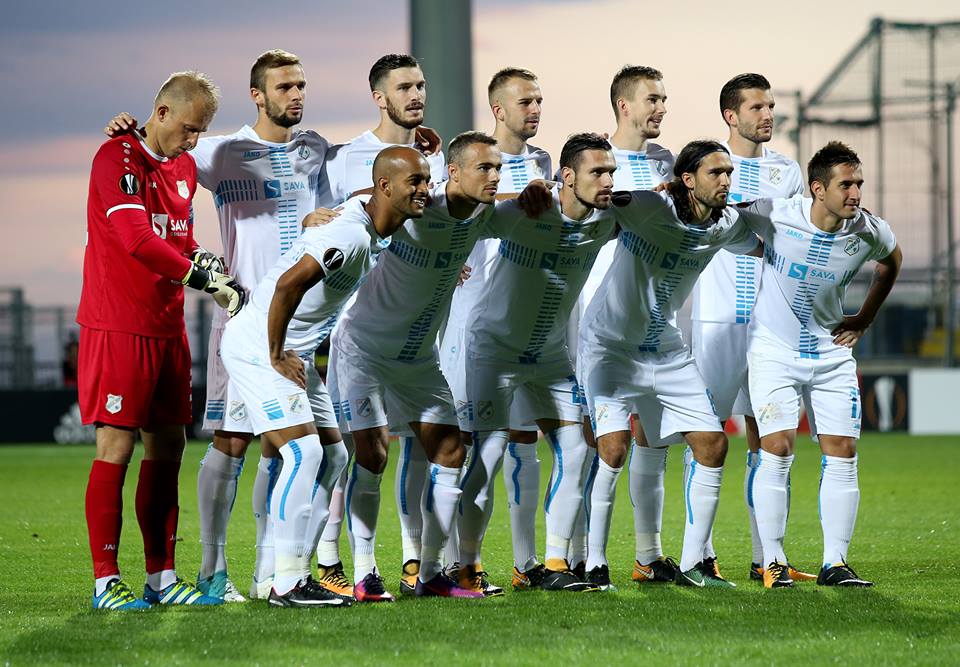 Hrvatski prvak Rijeka na Rujevici dočekao je grčki AEK u dvoboju 1. kola skupine D. Gosti su poveli u 16. minuti pogotkom Mantalosa, a Riječani su se vratili u susret nakon ubačaja iz kuta u 29. minuti, strijelac je bio Elez.