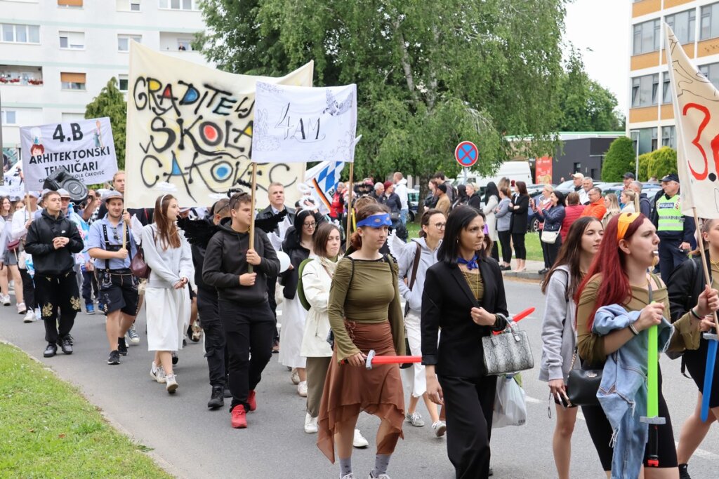 U veselom mimohodu, unatoč lošem vremenu, središtem Čakovca, danas 23. svibnja odzvanjali su pjesma, smijeh i neizmjerna radost – jer ni oblaci nisu mogli umanjiti sreću i ponos međimurskih maturanata koji su se danas oprostili od svojih srednjoškolskih dana.
