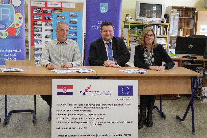Prostorije školske knjižnice u Osnovnoj školi Braća Radić Koprivnica poslužile su danas za završnu konferenciju energetske obnove te škole. Energetska obnova Osnovne škole provodila se u okviru Europskog fonda za regionalni razvoj. Cijeli projekt sufinanciran je s čak 4.332.727,75 kuna bespovratnih sredstava iz Europskih fondova, dok je preostali dio financiran iz proračuna Grada Koprivnice.
