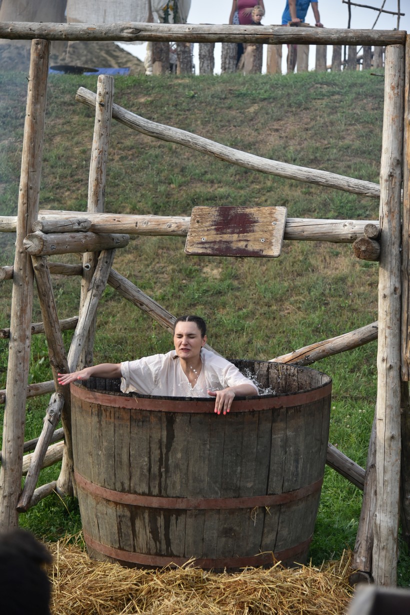 Jedna od glavnih atrakcija na koprivničkom Renesansnom festivalu događao se kod mehanizma za gađanje mete, čijim pogotkom se pokreće mehanizam koji baca lijepu djevojku u bačvu s vodom. Mnogi su pokušavali pogoditi metu, a nakon nekoliko minuta jednom spretnom momku to je pošlo za rukom pa je na opće oduševljenje djevojka bila mokra do kože.