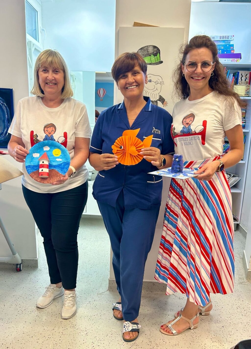 Zidovi Odjela Pedijatrije koprivničke bolnice odnedavno imaju nove stanovnike: šarene ribice, leptire, kornjače, cvjetove i hobotnice. Uz njih su i tanjurići s tipičnim ljetnim motivima- morem, svjetionicima, brodicama i školjkama.