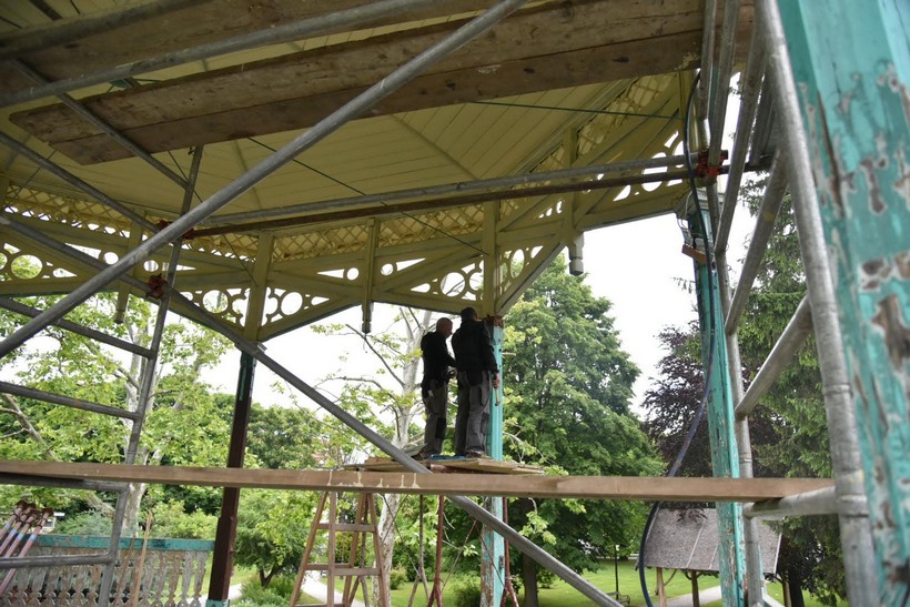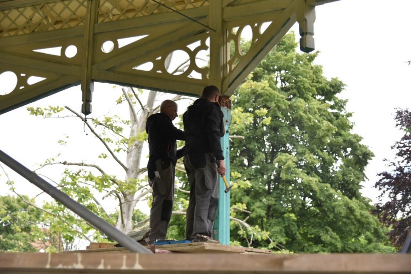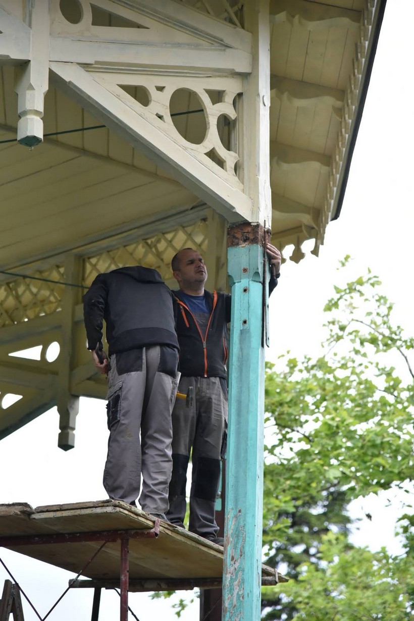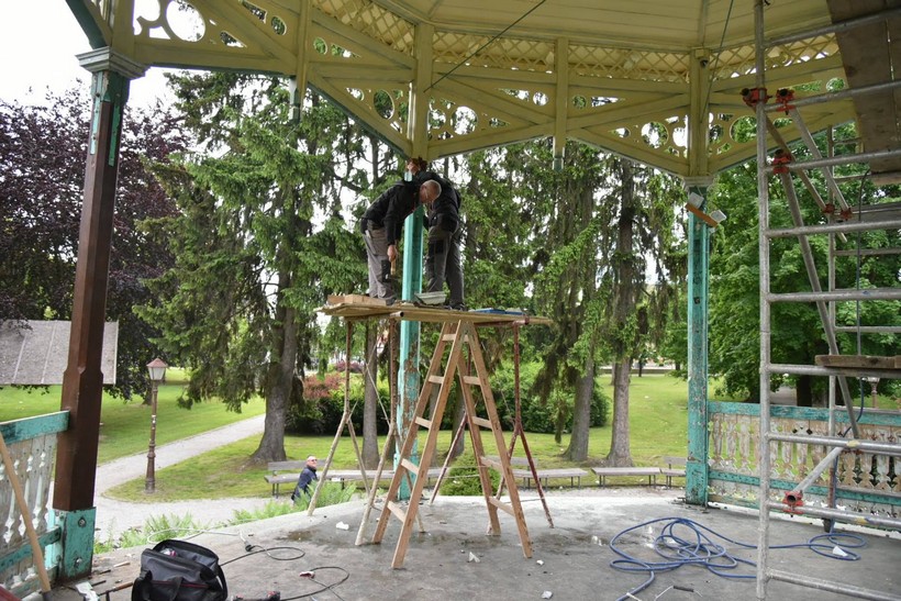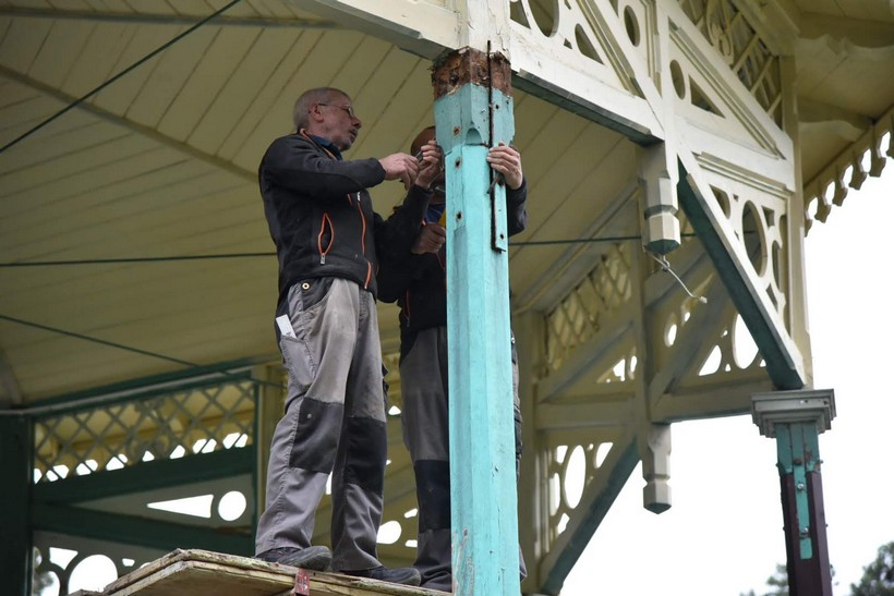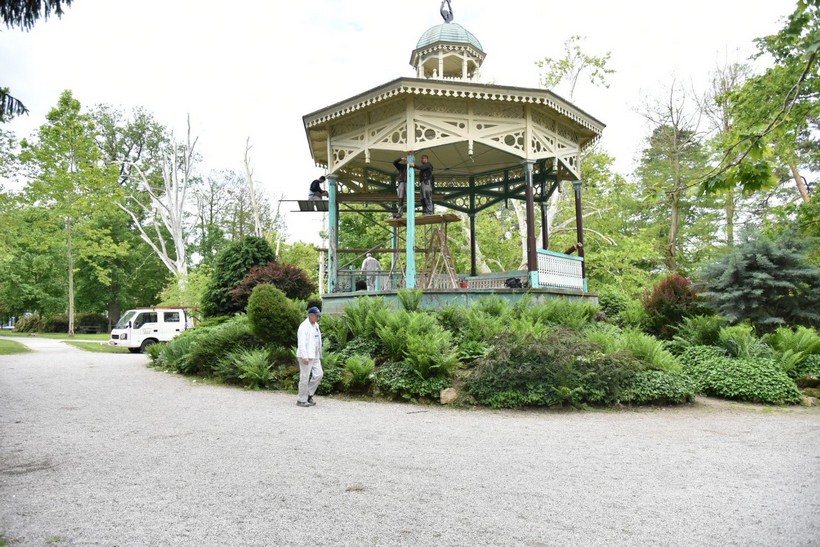 U tijeku je rekonstrukcija glazbenog paviljona u Gradskom parku u Koprivnici. Uključeni su tesarski radovi na zamjeni postojećih dotrajalih drvenih stupova te potrganih elemenata ograde paviljona.