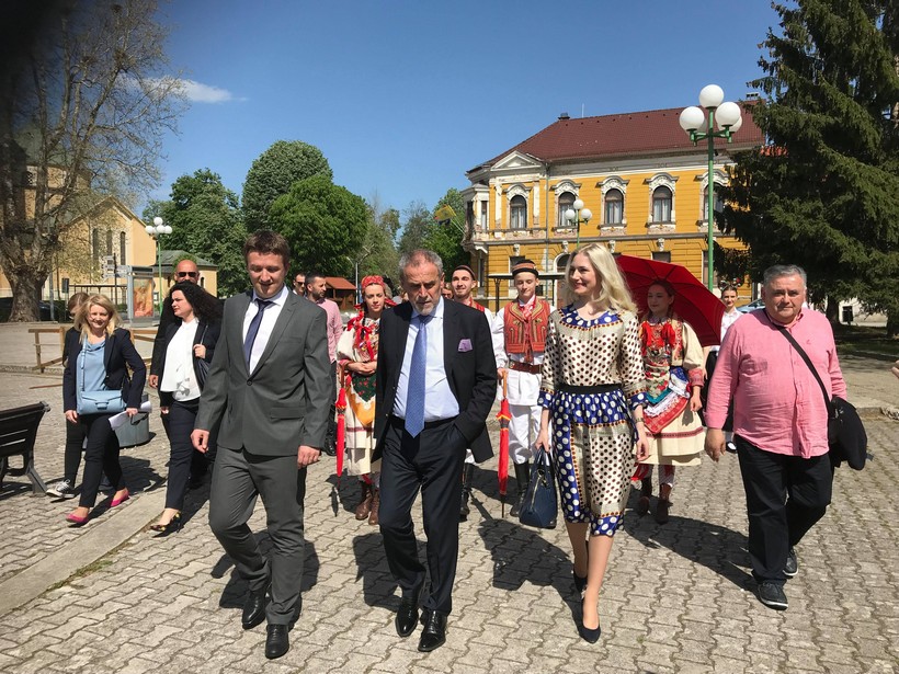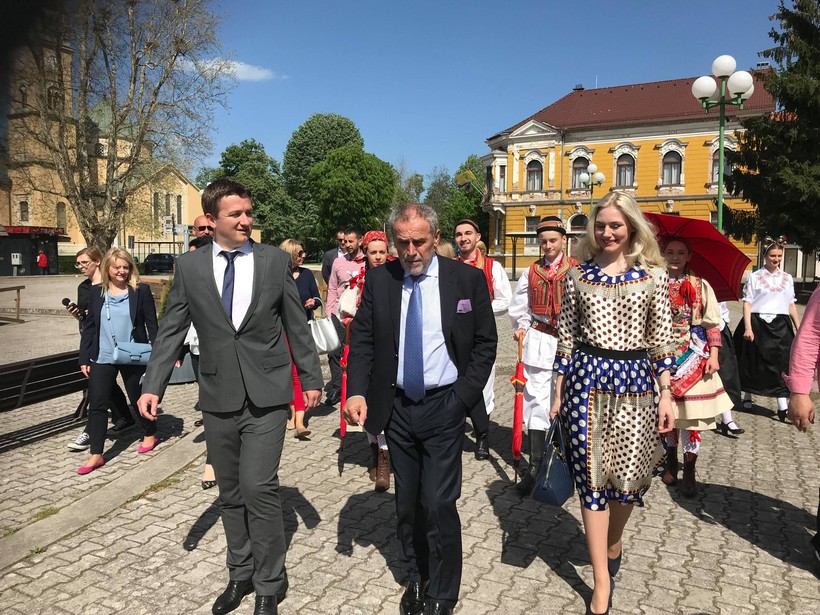 Na Trg svetog Jurja u središtu grada dočekali su ga domaćini; saborski zastupnik i predsjedni Gradskog vijeća Željko Lacković i gradonačelnik Grada Đurđevca Hrvoje Janči zajedno se članovima đurđevačkog KUD-a.
