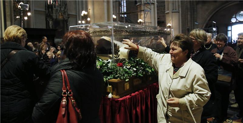 Mnoštvo vjernika u četvrtak, 14. travnja 2016., je u zagrebačkoj katedrali odalo poštovanje svetom Leopoldu Bogdanu Mandiću.