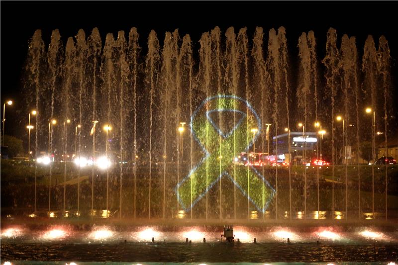 Osvjetljavanje fontana u Ulici Hrvatske bratske zajednice u zlato povodom podizanja svijesti o malignim bolestima dječje dobi.