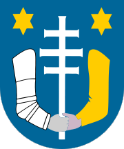 Treći pokušaj išao je s grbom i zastavom koji su usvojeni na Gradskom vijeću 20. studenoga 1997., na prijedlog povjesničara umjetnosti i grafičkog dizajnera Zdenka Baloga. Grb je plavi štit polukružnog zaključka sa elementima povijesnog grba, koji su u međuvremenu heraldički usklađeni. Zastava je plave boje, a na njoj se grb nalazi na polovici polja zastave prema koplju. Ovakav grb i zastava, uz odobrenje Ministarstva koje je odmah uslijedilo, u korištenju je i danas.