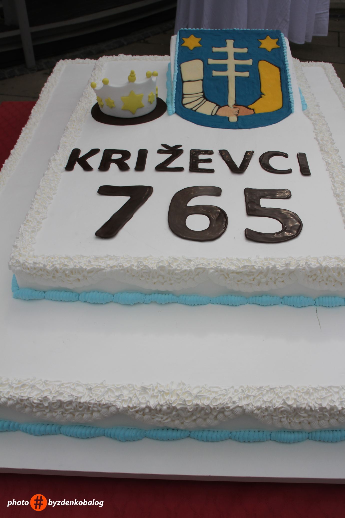 Jednostavnim povezivanjem oba grba nastaje štit sa dvije ruke koje podržavaju trogubi križ, a umjesto zvijezde i mjesec, koji ranije krase oba štita, ostaju dvije zvijezde, što heraldičkim jezikom vjerojatno nastoji pokazati jednakost oba grad u ujedinjenom novom gradu Križevcima. Tako to izgleda na povelji kojom Marija Terezija verificira provedeno objedinjenje i podjeljuje ujedinjenim Križevcima pravo da isprave ovjeravaju novim pečatom, kakav je prikazan na listini privilegije. Pored barokno ukrašene podloge, grb krasi i kruna sa pet parožaka i draguljima različitih boja. Među najranije prikaze križevačkog grba vjerojatno pripada onaj na stolu iz polovine 18. stoljeća, dakle neposredno nakon ujedinjenja. Stol se čuva u Gradskom muzeju, a prikazana je veduta grada, sa grbom iznad. Grb pridržava austrijski dvoglavi orao, a svi su detalji jedinični ispravi iz 1752.