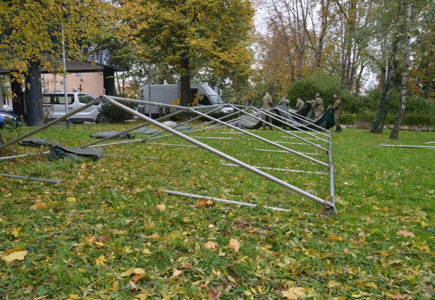 Hrvatski vojnici postavljaju petnaest polja šatora tipa M70 s pripadajućim poljskim stolovima i klupama na tri lokacije u dvorištu Medicinskog fakulteta u Zagrebu koji je stradao u potresu tijekom ožujka. Na postavljanju šatora angažirano je deset pripadnika Bojne za opću logističku potporu Zapovjedništva za potporu Hrvatske vojske, a šatori će se koristiti za potrebe boravka i prehrane studenata.