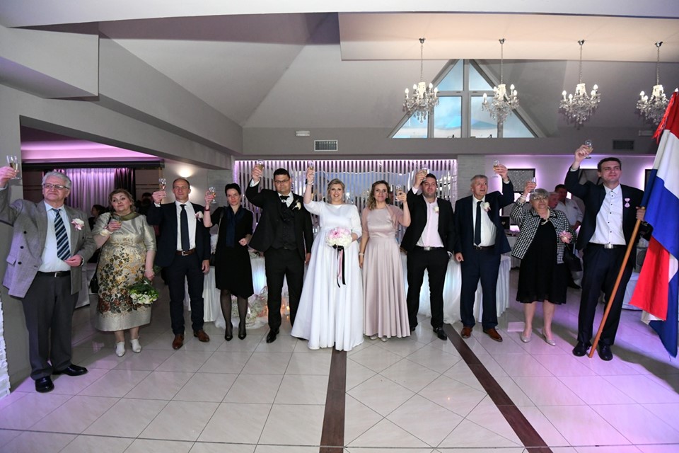 Nakon što su mladenci pred župnikom, kumovima, familijom i prijateljima izrekli svoje zavjete vječne ljubavi, svadbena svečanost nastavljena je u restoranu Inela, gdje ih je do jutarnjih sati zabavljao glazbeni sastav “Lotos Band”.