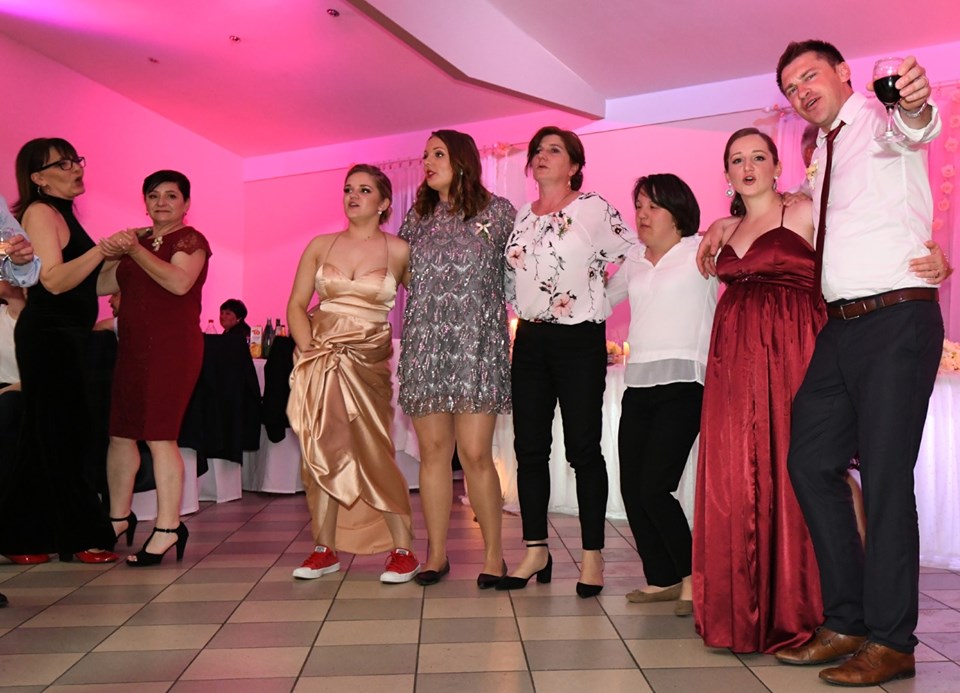 Nakon što su mladenci pred župnikom, kumovima, familijom i prijateljima izrekli svoje zavjete vječne ljubavi, svadbena svečanost nastavljena je u restoranu “Joker” u Gornjoj Rijeci, gdje ih je do jutarnjih sati zabavljao glazbeni sastav “Ni pet ni šest”.