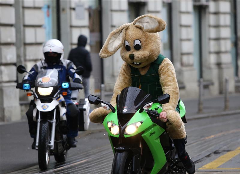 Tijekom subotnjeg prijepodneva, na Trgu se okupilo i stotinjak moto-zeka, članova Moto kluba Osijek. Oni već tradicionalno, svake godine, pred Uskrs, odjeveni u kostime zeka, u organiziranoj povorci obiđu cijeli Osijek, a potom se zaustave na središnjem Trgu Ante Starčevića gdje djecu daruju pisanicama i slatkišima.