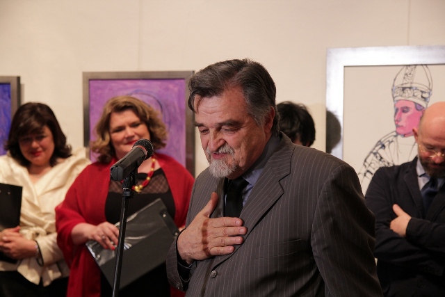 Program je nastavljen u Gradskoj galeriji otvorenjem izložbe „Hrvatski sveci i blaženici u našem narodu“ akademskih slikara Josipa Botterija Dinija, Ana Marije Botteri Peruzović i Hrvoja Marka Peruzovića. U svečanosti su sudjelovali križevački gradonačelnik Branko Hrg, koprivničko-križevački župan Darko Koren, ravnatelj križevačkoga Gradskog muzeja Zoran Homen, direktorica Galerije hrvatske sakralne umjetnosti „Laudato“, koja je organizirala izložbu, Ksenija Abramović, likovni kritičar Stanko Špoljarić te sami autori. Izložbu je otvorio mons. Zlatko Koren. Glazbeni obol svečanosti dala je klapa „Bistrica“ te prigodnim stihovima o svetosti glumac Dubravko Sidor. Kroz program je uime organizatora 7. Dana hrvatskih svetaca i blaženika Udruge za promicanje znamenitih Križevčana „Dr. Stjepan Kranjčić“ te križevačkih župa sv. Ane te BDM Žalosne i sv. Marka Križevčanina vodila Tanja Baran. Svečanosti otvorenja izložbe pridružio se i bjelovarsko-križevački biskup mons. Vjekoslav Huzjak.