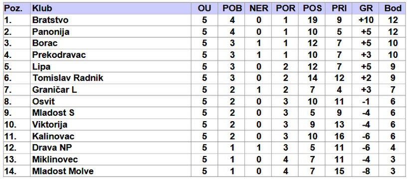 Tomislav Radnik na domaćem terenu dočekuje Miklinovec koji je u prošlom kolu upisao prva tri boda, pobijedivši Osvit 1:0 na domaćem terenu. Derbi donjeg djela prvenstvene ljestvice igraju Drava i Kalinovac u Novigradu Podravskome. Obje ekipe upisale su poraze u prošlom kolu tako da će im svaki bod jako dobro doći.