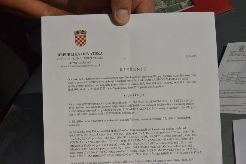 – Svjedoci su bili, od tog ‘Brzog’ Jože žena i sudac Savić koji je i sastavljao samo rješenje. Bio je dogovor da će im stari djed dati jedan red vinograda, ali oni ne da nisu uzeli samo to, nego su si precrtali i klijet. A nikad gruntovno to nije bilo preneseno pa je tako on gruntovni vlasnik spomenutih 40 kvadrata, a ja, koja sam od muža naslijedila što je njemu pripalo, drugih 68 kvadrata – kazala je.