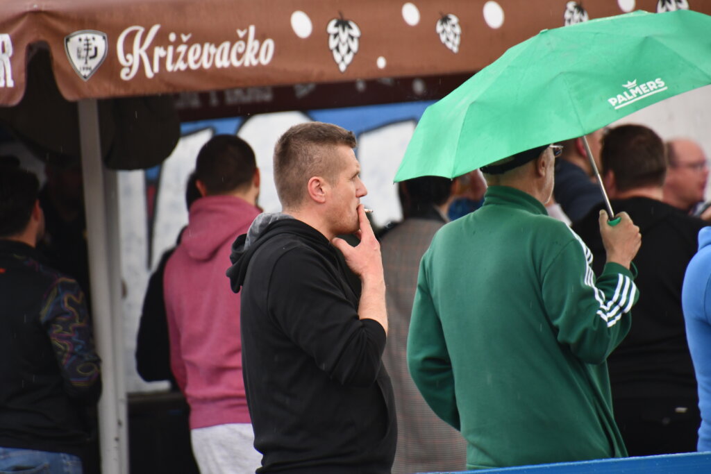 Naime, druženje tijekom utakmice za posjetitelje organizirao je kandidat za gradonačelnika Tomislav Katanović koji je i zabilježen kako uz društvo i cigarete prati zbivanja na travnjaku. Zabilježen je i kako opušak baca iza ograde do atletske staze. I taj dio nije sporan, jer opušak je na kraju negdje morao završiti. Sporna je činjenica zašto nogometni klub dozvoljava političke skupove u kampanji na prostoru Gradskog stadiona.