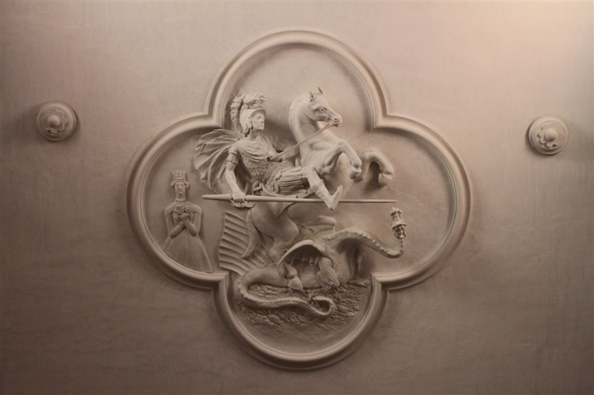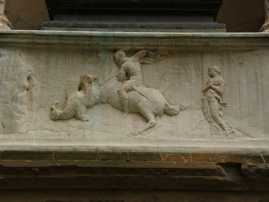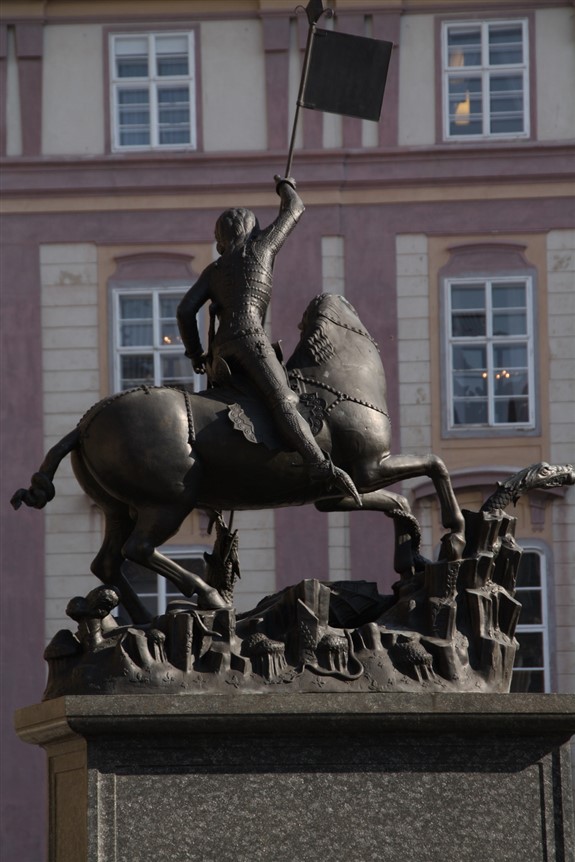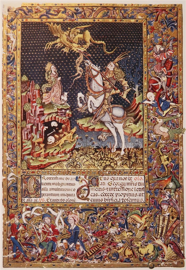 Veliku popularnost dobiva u vrijeme internacionalne gotike, kada nastaju neki od najljepših konjaničkih kipova. Inspirirao je i velikog Donatella, a među najljepše slike s temom borbe sa zmajem spada iluminacija iz misala Jurja de Topusko u Riznici Zagrebačke katedrale.