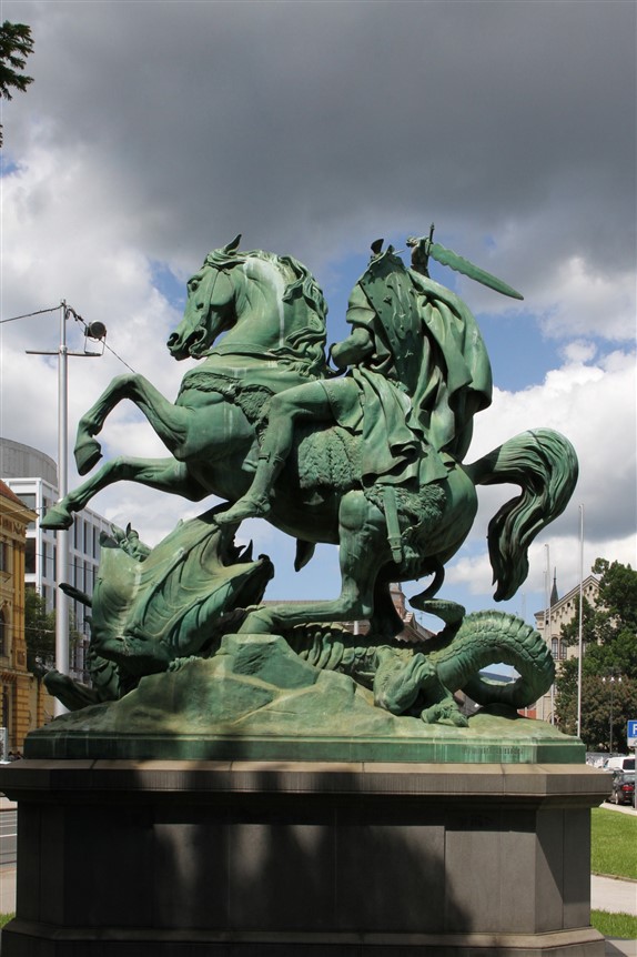 Omiljena je tema svetačkih kipova u gradovima, pored svetog Florijana možda najčešći, a i ‘krajputaša’ kipova uz cestu na javnom štovanju. Svetkovanje Svetog Jurja više je od blagdana, to je pučka proslava proljeća u koju su se u lik viteškog sveca sublimirale različite pretkršćanske tradicije. Kelti su početkom proljeća slavili svetkovinu ‘Zelenog čovjeka’, koji se na raznim krajevima Europe svetkuje kao ‘Zeleni Jure’, a poznaje ga i naš folklor. Pa ipak, jedva da ima ijedan podatak o ovom svecu koji nije obavijen velom legende. Stoga je njegovo mjesto u kalendaru katoličkih svetaca jedno vrijeme čak bilo i upitno, sačuvao ga je, ali su neke zgode iz njegovog života ipak izbačene iz službene katoličke hagiografije, poput one najpopularnije, u kojoj pobjeđuje zmaja.