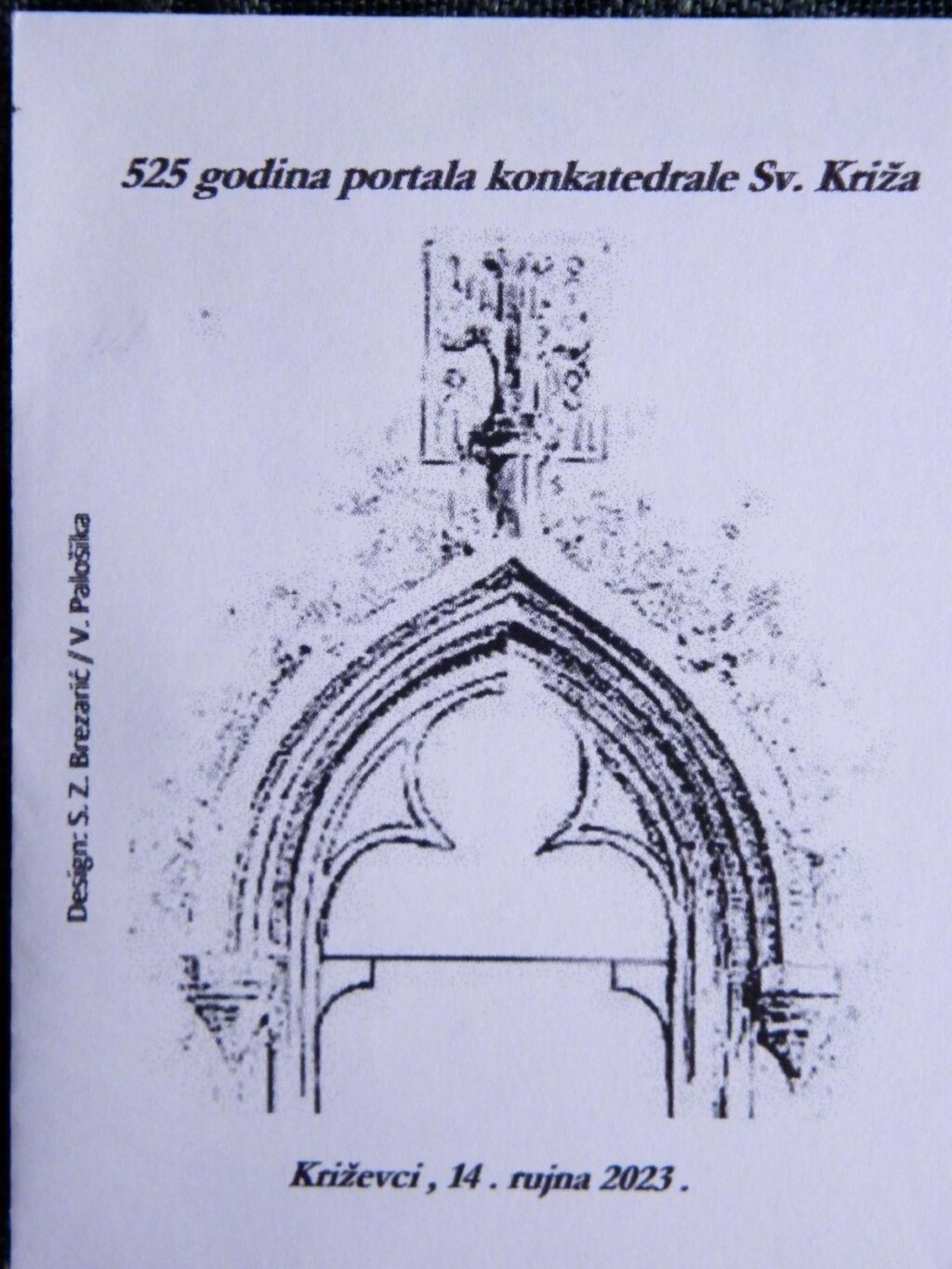 Riječ je o gotičkom sakristijskom portalu iznad kojeg je uklesana godina 1498. Žig i omotnicu oblikovali su Stjepan Zdenko Brezarić i Vladimir Palošika.