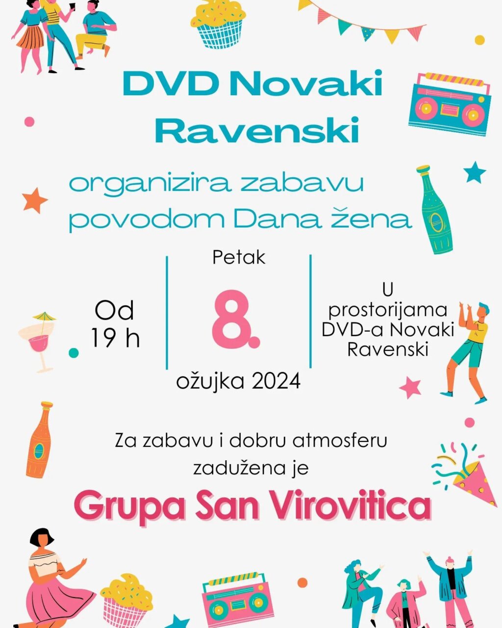 Dobrovoljno vatrogasno društvo Novaki Ravenski organizira na Dan žena veliku zabavu. Okupljene će zabavljati grupa San.