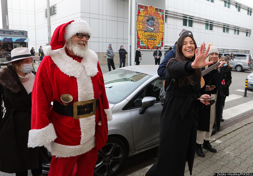 Maja Bajamić predvodila je pjevanje božićnih i dječjih pjesama ispred prozora Zavoda za pedijatrijsku hematologiju, onkologiju i transplataciju krvotvornih matičnih stanica Kliničkog bolničkog centra Zagreb.