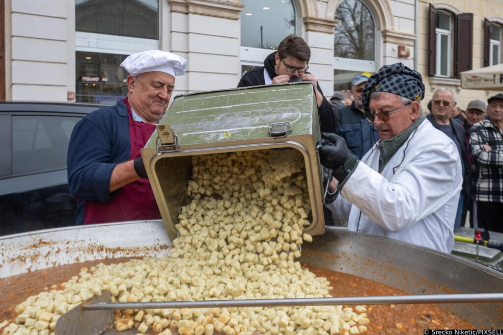 Naime, gulaš od veprovine pripremljen je u velikoj padeli u čijoj pripremi je sudjelovao i gradonačelnik Pule Pedja Grbin te i njegov otac. Vepra je donirao Lovački savez Istre.